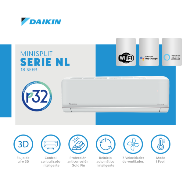 Con un diseño de panel plano mate contorneado, el modelo NL se integra perfectamente con la decoración de tu hogar, mientras te brinda confort con aire acondicionado. Gracias a su control remoto inalámbrico retroiluminado y simplificado, puedes ajustar fácilmente la temperatura para adaptarla a tus necesidades y estilo de vida.