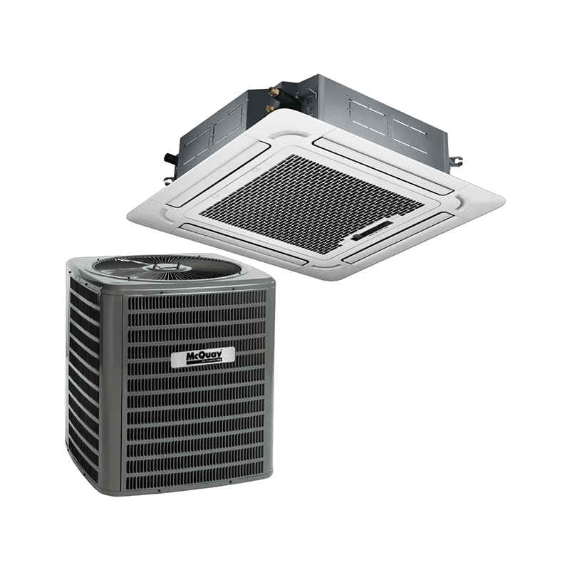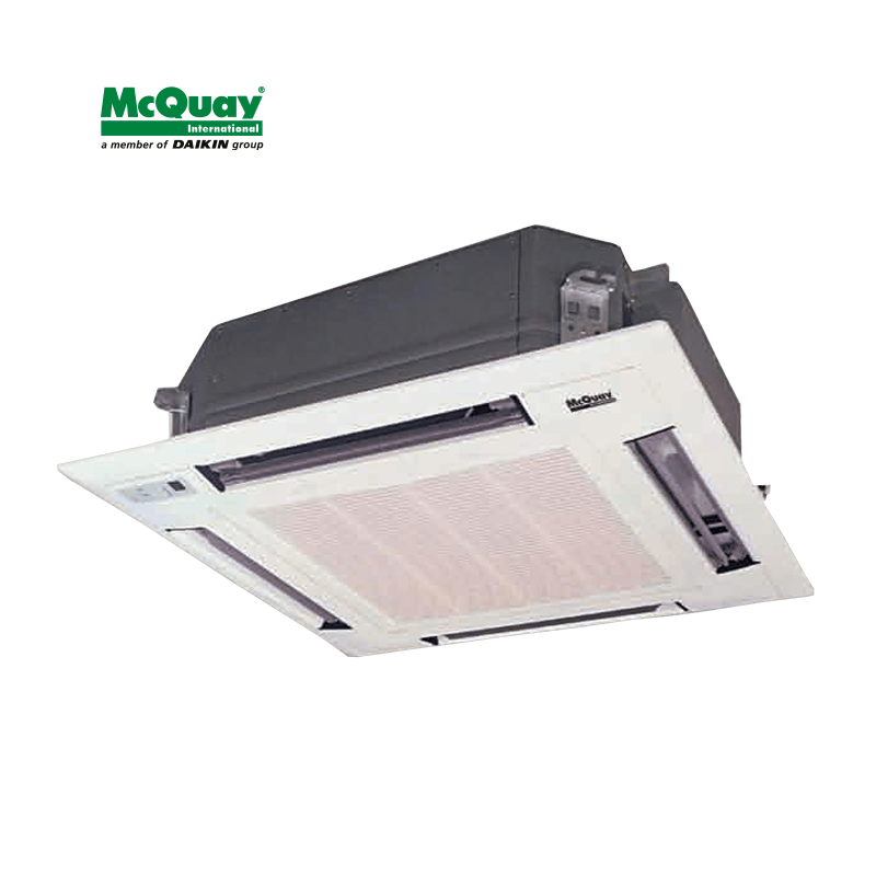 El cassette de 4 vías McQuay es un sistema de aire acondicionado comercial ligero, diseñado para instalación oculta en falsos techos. Ofrece un diseño ultra delgado (aprox. 230mm de altura) con descarga de aire a 4 vías y oscilación automática, garantizando una distribución homogénea en oficinas, restaurantes y comercios.